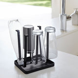 It comes with anti-slip caps, allowing you to dry your glasses upright without scratching them.