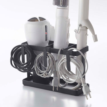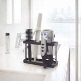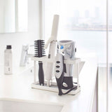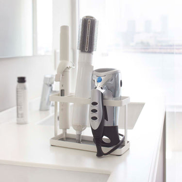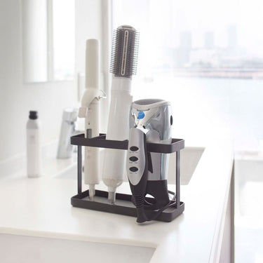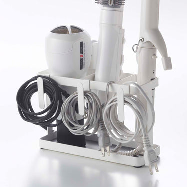 In addition to hair dryers, this product can also store styling items such as sprays and brushes. It's easy to use as you can quickly grab what you need, and it helps to keep your bathroom area tidy. It can be attached to the bathroom door using the included hooks. Even hair dryers with brushes can be stored.