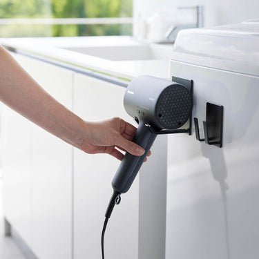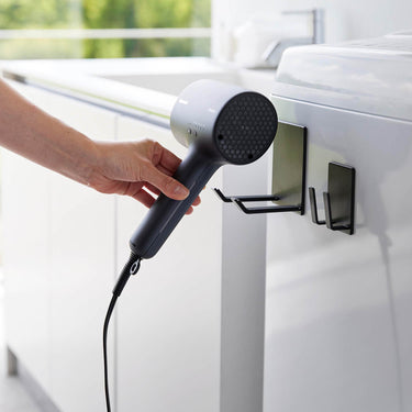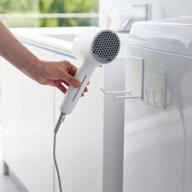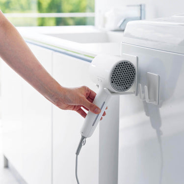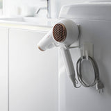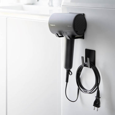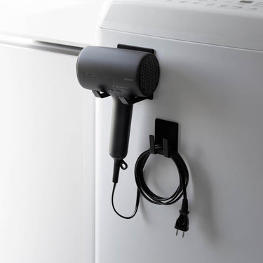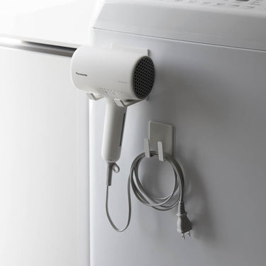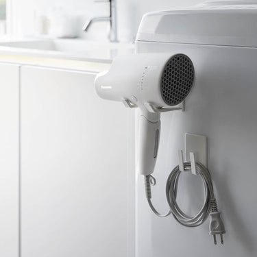 Simply hang your hairdryer and plug cord for easy storage. It can even be installed on the gentle curve of a washing machine front. Tangle-prone cords can be neatly bundled and stored. It also accommodates hard-to-store T-shaped hairdryers. With the hairdryer hanger and cord holder being separate, it's designed for easy cord storage in your preferred location.