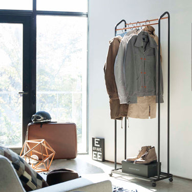 A hanger rack with casters for easy mobility and outstanding storage capacity!
