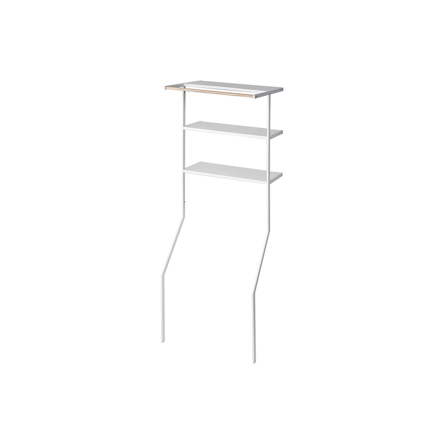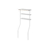 A laundry shelf that simply leans against the wall. It's handy for storing towels and laundry items, and for stocking up. Comes with a hanger bar, perfect for temporary drying.