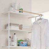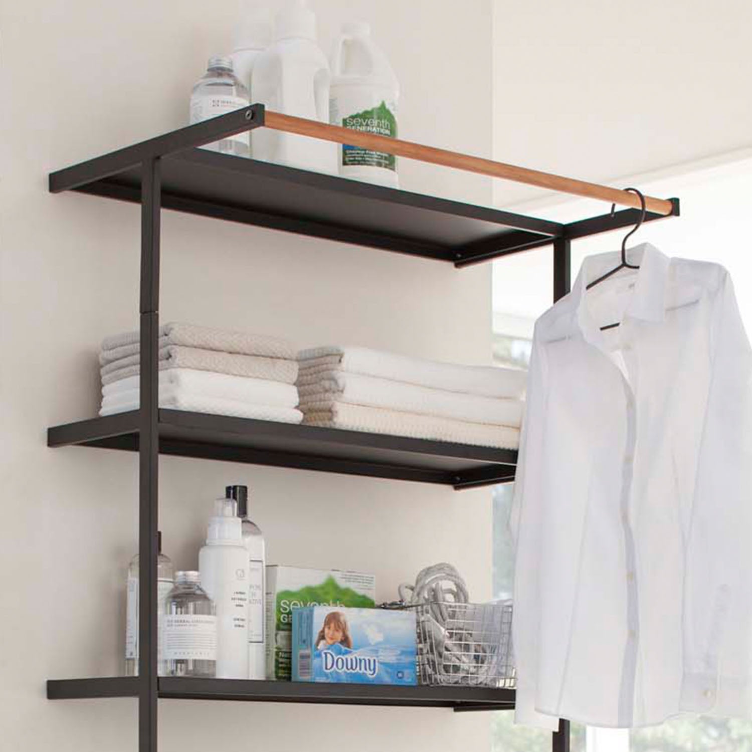 A laundry shelf that's good to go just by leaning it against the wall. Comes with a handy hanger bar.