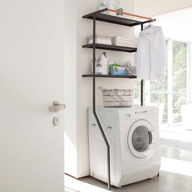 A laundry shelf that's easy to install, simply by leaning it against the wall.