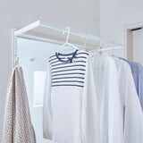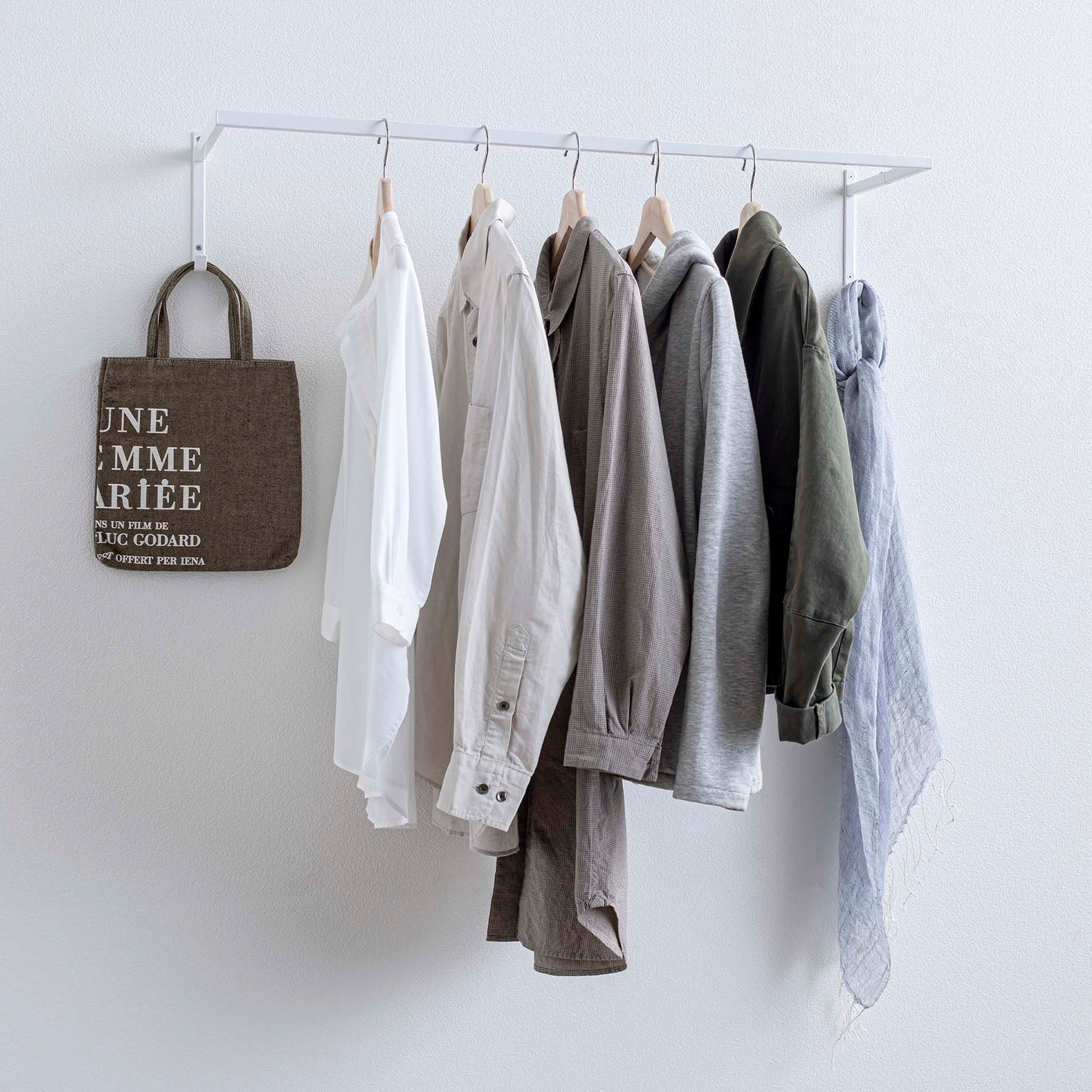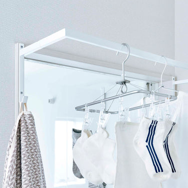 Easily attach to the wooden frames of doors or the underlying material on both sides with wood screws! Transform the space in front of your bathroom door into a drying area. Extendable, so it can be fitted in front of bathroom doors of various sizes. Also can be attached to the walls of your laundry room or bedroom for drying laundry or storage. Comes with convenient hooks for hanging storage. Can also be used as a wall-mounted clothes hanger.