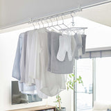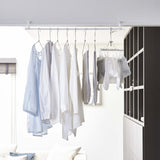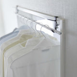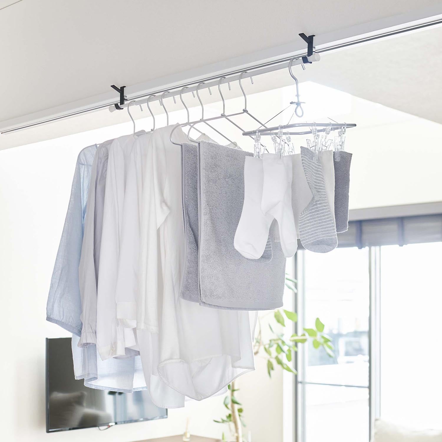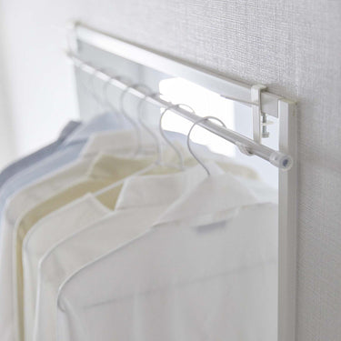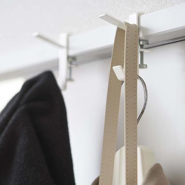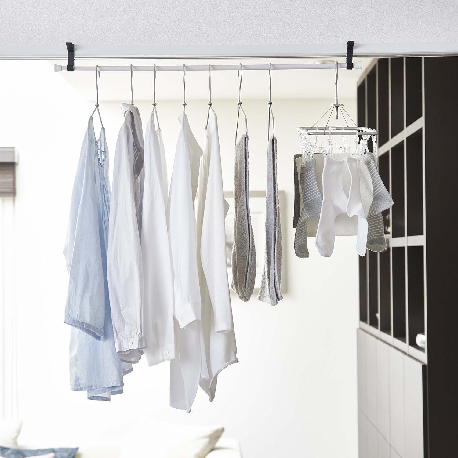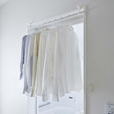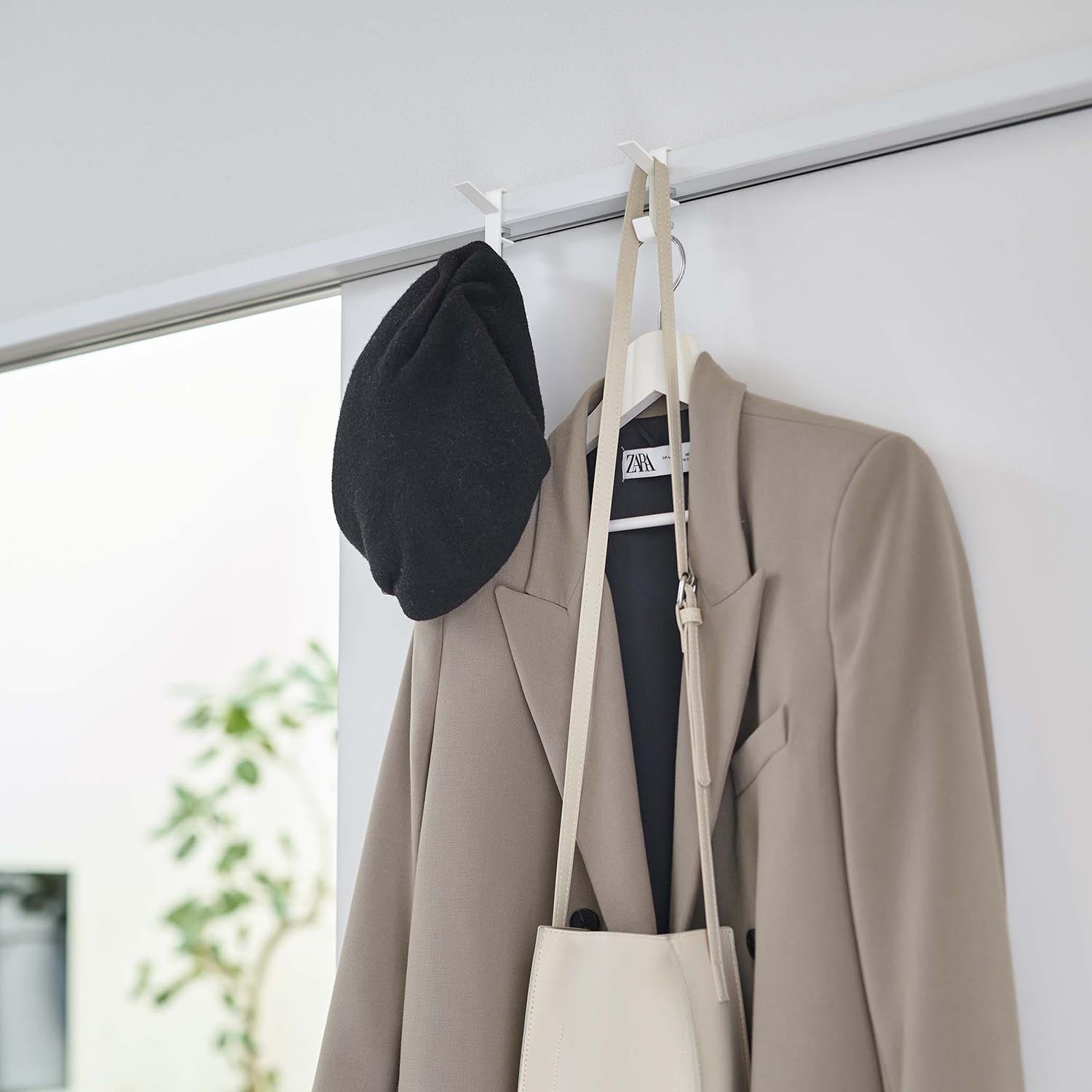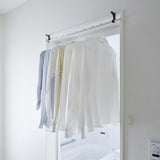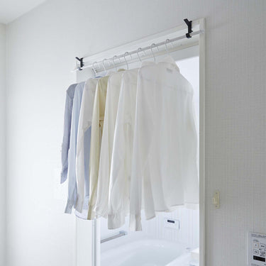 Easily installable on doorframes and window frames in rooms or in front of the bathroom. It can also be used as a place to hang laundry or for storage. Compatible with wooden doorframes, sliding door frames, window frames, desks, and shelves. Prevents falling by inserting a pin into the top of the frame. It can be securely fixed to the frame with an adjustment screw.