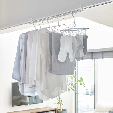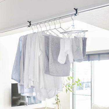 You can transform it into an indoor drying rack or storage hanger bar by simply hanging your tension rod or pole.