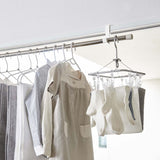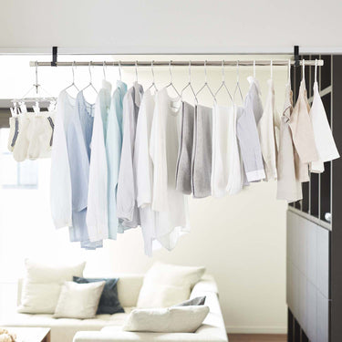 By hanging your existing tension rod or pole, it can serve as an indoor drying rack or storage hanger bar.