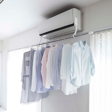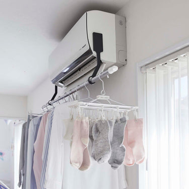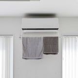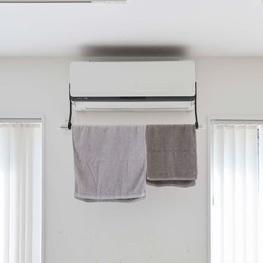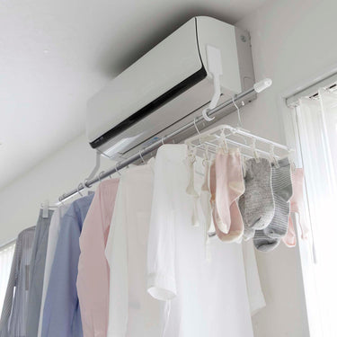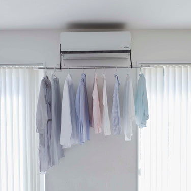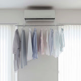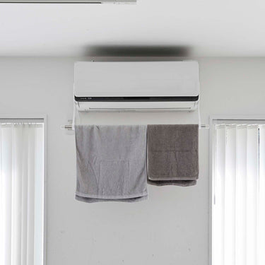 Easily attach to both sides of your air conditioner with film hooks. Compatible with glossy, flat surfaces of air conditioners. Hang your own rod or pole and utilise it as a space to dry your laundry. Quickly dry your clothes with dehumidification in the summer and heating in the winter. An energy-saving way to smartly dry your clothes.
