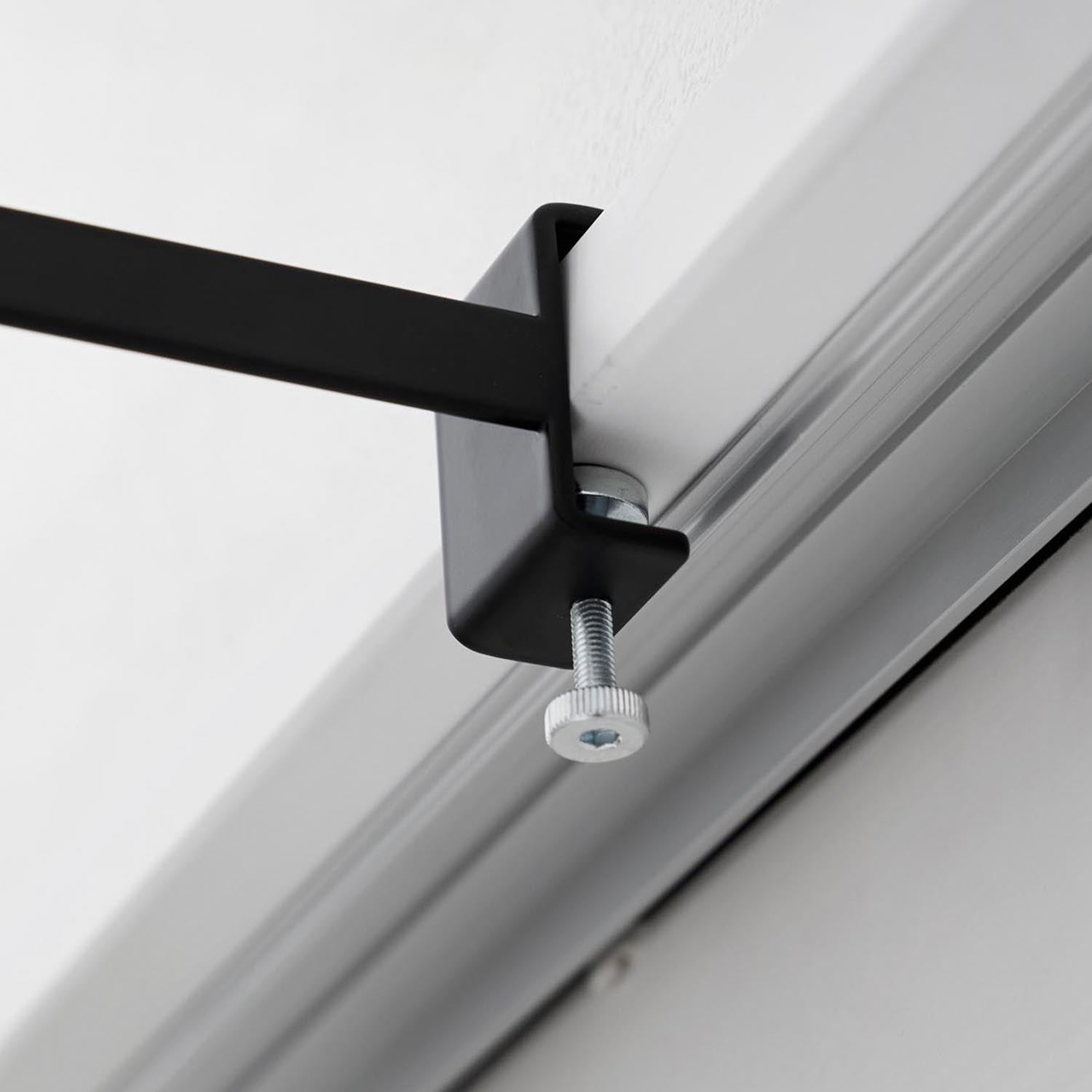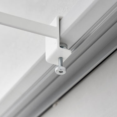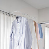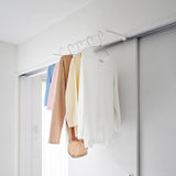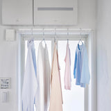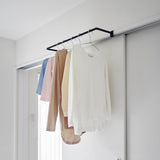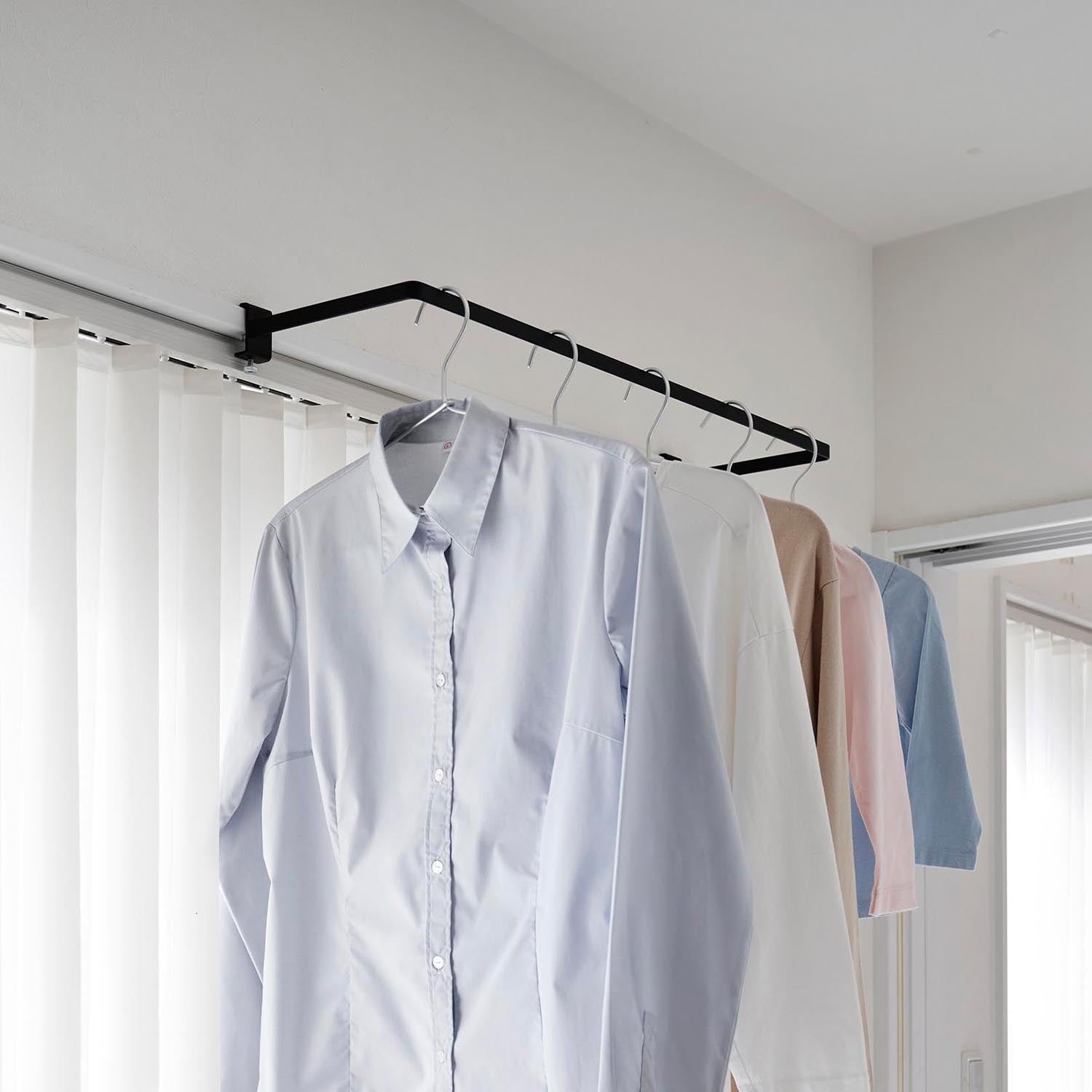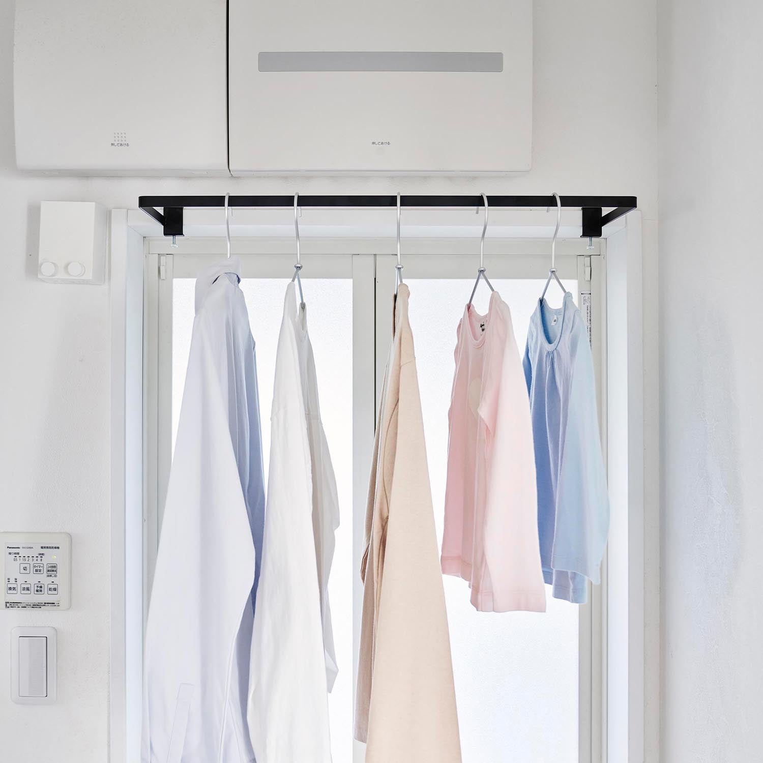 Easily attachable to doorframes, window frames, and more. This indoor drying hanger allows you to dry your clothes even with sliding doors or curtains closed. It's designed to avoid contact with curtains or shades, creating a space with good airflow. A convenient solution for securing additional drying space. If installed in the laundry room, the process of washing and drying can be completed in one place. Gather your laundry quickly and take it in all at once. Prevents falling by pinning to the top of the frame. Comes with an included hex wrench, allowing you to securely fasten it to the frame using the adjustment screw.