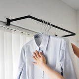 An indoor clothes hanger that can be easily installed on doorframes, window frames, and more.