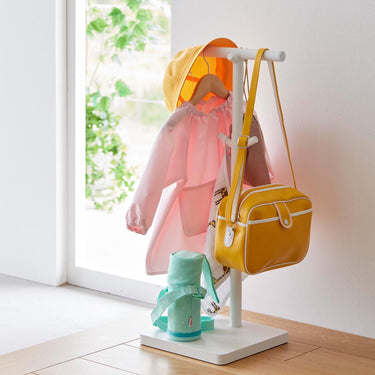 Store all your child's school bag and supplies in one place in your living room. The height can be adjusted in four stages, every 10cm. You can open and close the school bag while it's still hanging on the stand. It's also great for storing preschooler's bags and uniforms, and handy for temporarily hanging clothes and commuting bags.