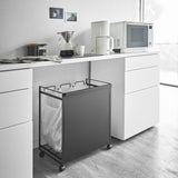 A stylish, privacy-enhanced waste sorting wagon that allows you to hang shopping bags and sort your rubbish.
