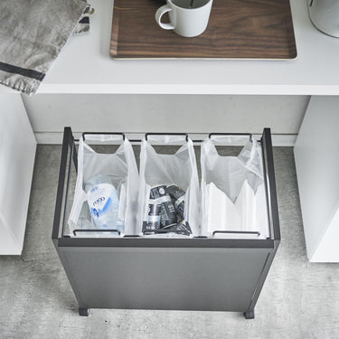 You can sort items such as bottles, cans, and plastic bottles. You can use it by hooking on shopping bags from your local convenience store or supermarket. It comes with casters, making it easy to remove bags and move it around when cleaning.