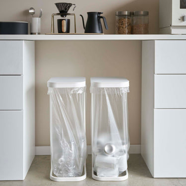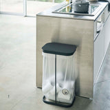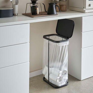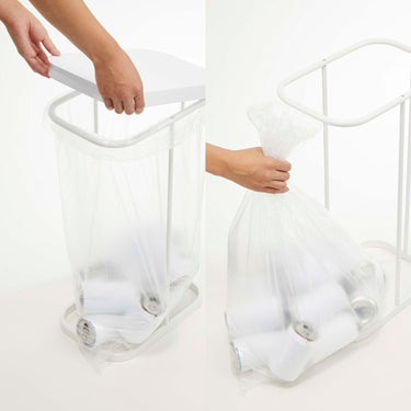 Simply hang a rubbish bag and close the lid to set up. This bin bag holder is also handy for waste sorting.