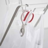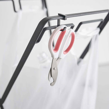 Simply hang a 30L rubbish bag or shopping bag to easily dispose of vegetable scraps and food trays. It's also possible to sort empty cans and plastic bottles. This stand can hold a 30L rubbish bag, two shopping bags, or a larger-sized rubbish bag. You can hang small items like sorting clips on the included hooks. The hooks also prevent the bags from slipping.