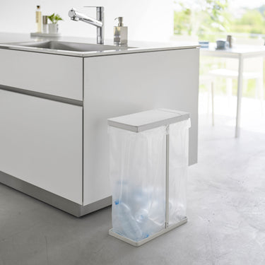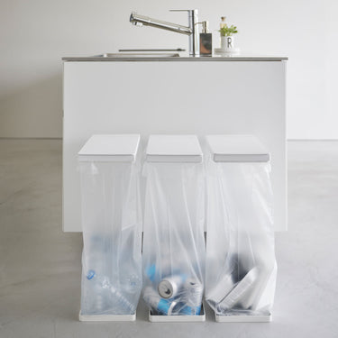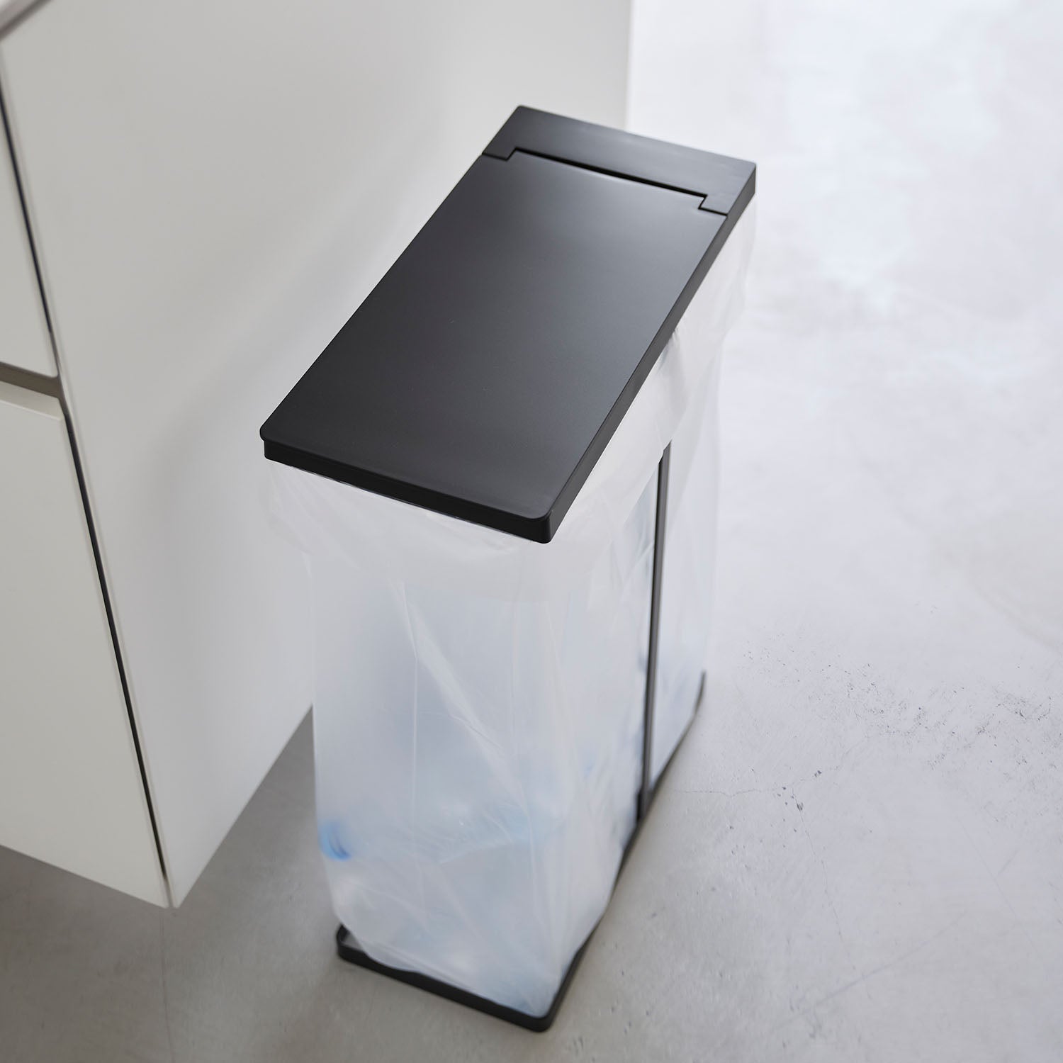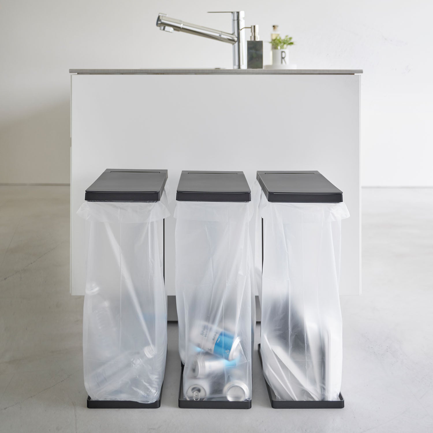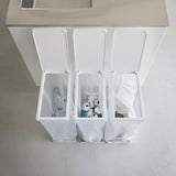 Simply hang a rubbish bag and put the lid on to set it up. If you use multiple bins side by side, it's convenient for separating recyclables such as plastic bottles, cans, and other waste. The lid opens and closes easily with one hand. Changing the bag is a breeze - just remove the lid and swiftly pull out the bag from the front!