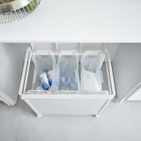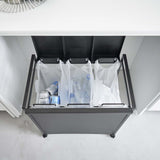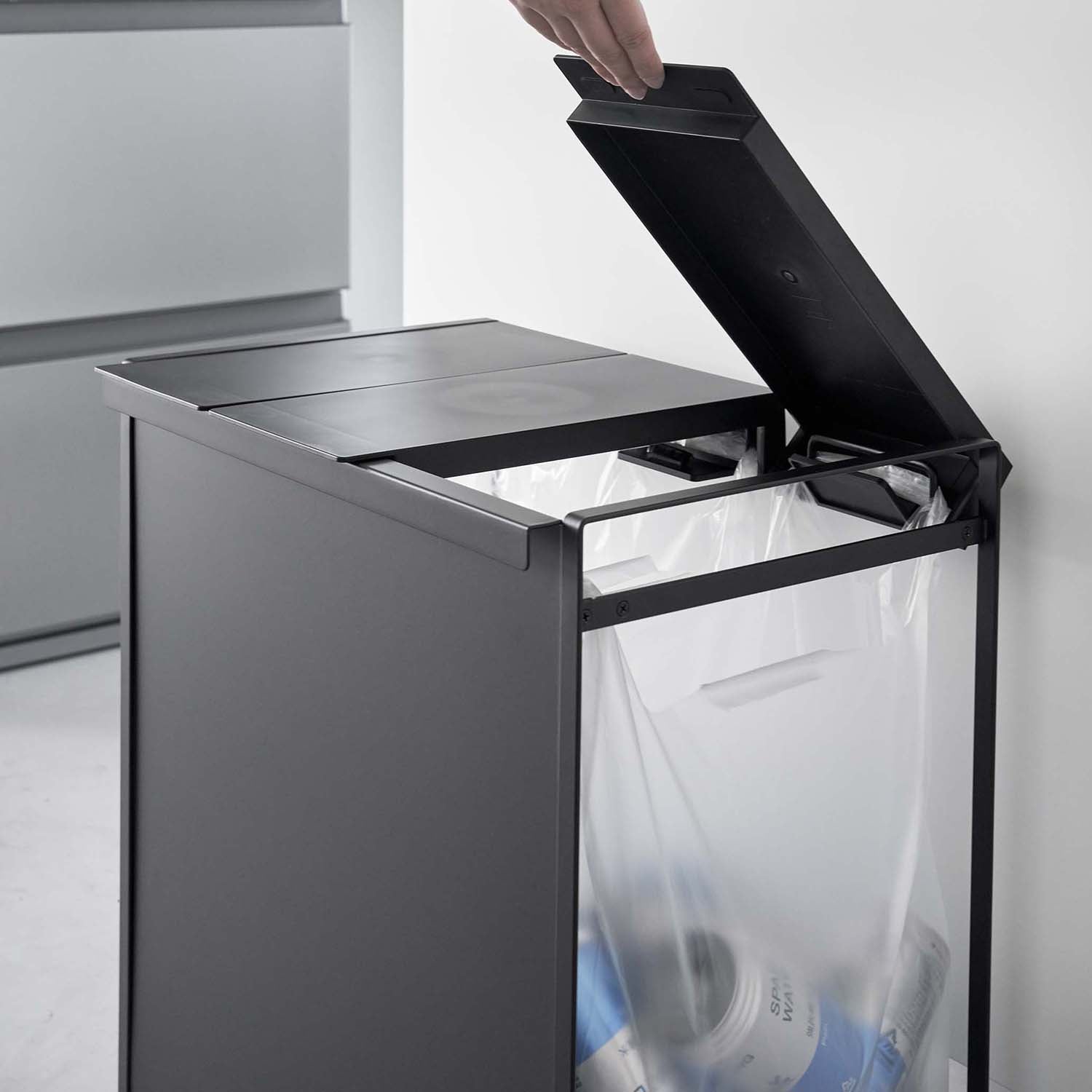 A stylish bin with a lid that allows for waste separation while concealing bin bags.