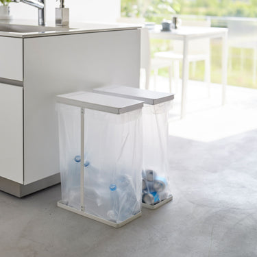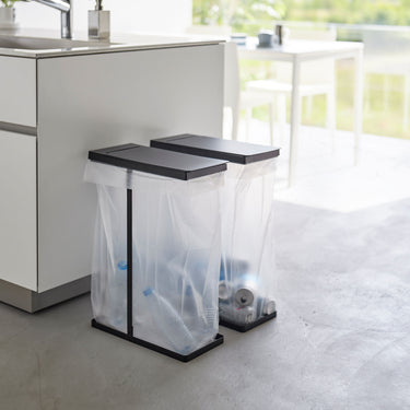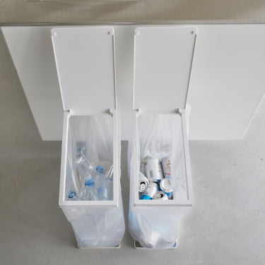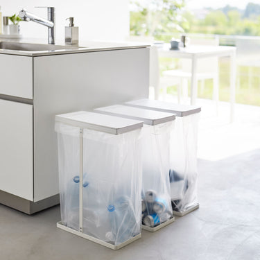 Just hang a bin bag and close the lid to complete. Convenient for sorting items such as plastic bottles, cans, and recyclable waste. The easy-open lid can be operated with one hand. The contents are not visible, making it hygienic. Place two side by side for sorting cans and recyclable waste. Changing the bin bag is easy, just remove the lid and pull it out from the front!