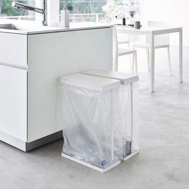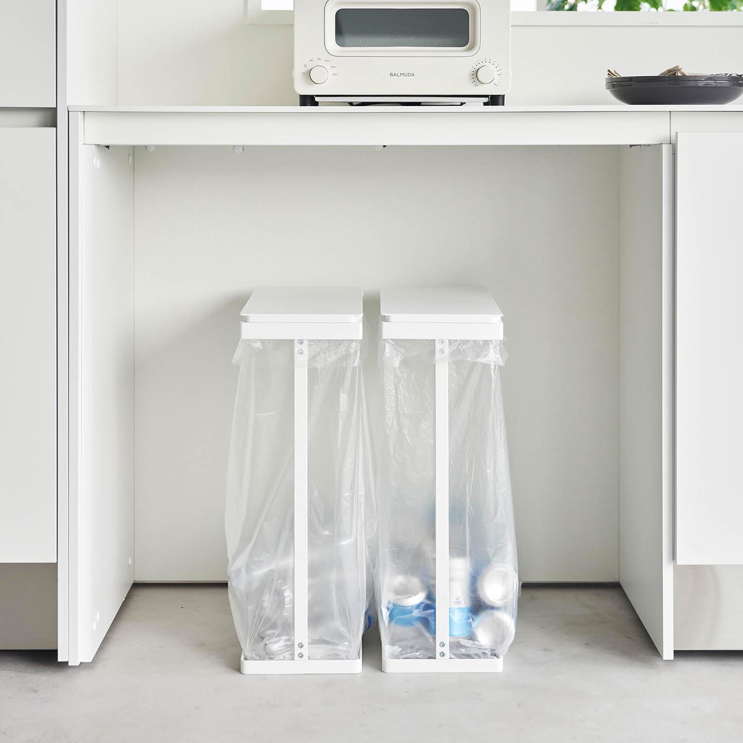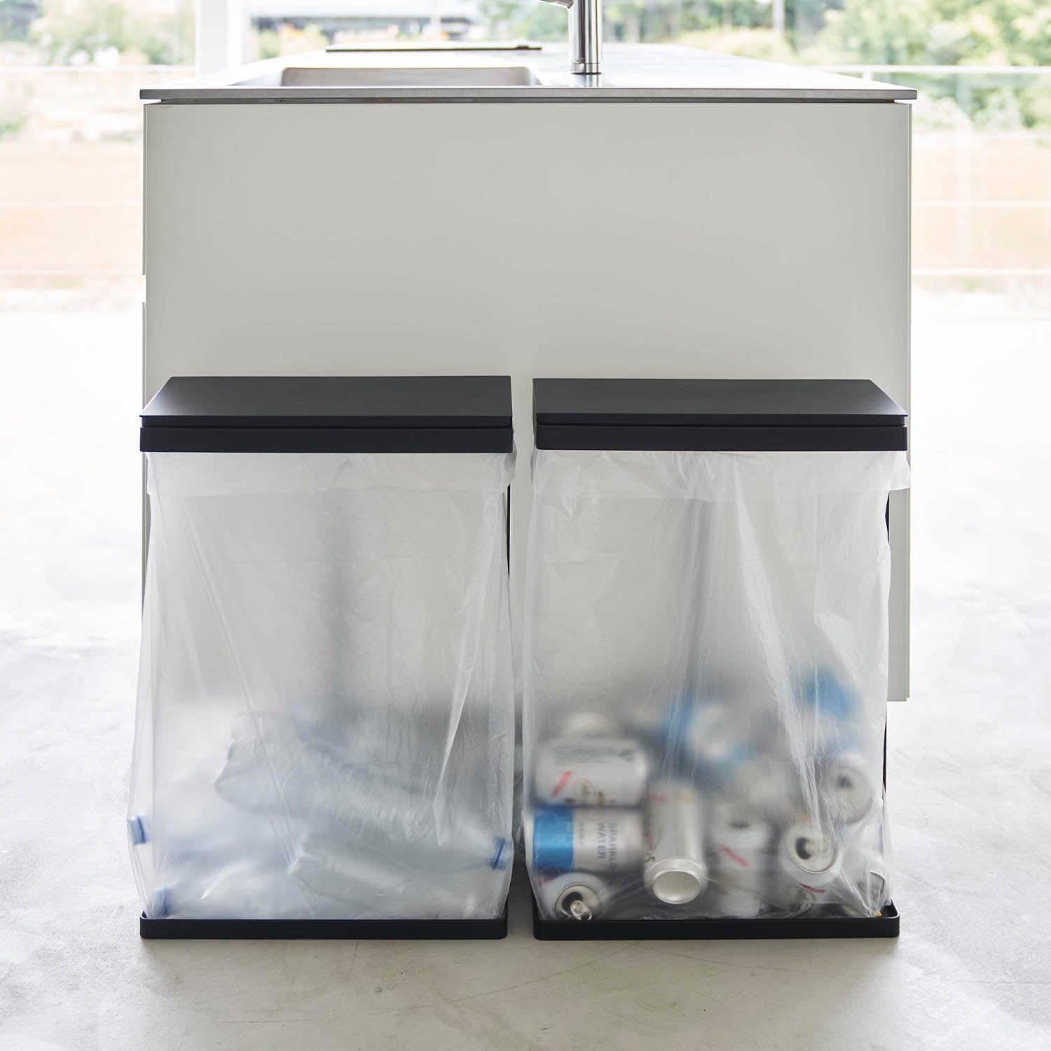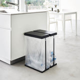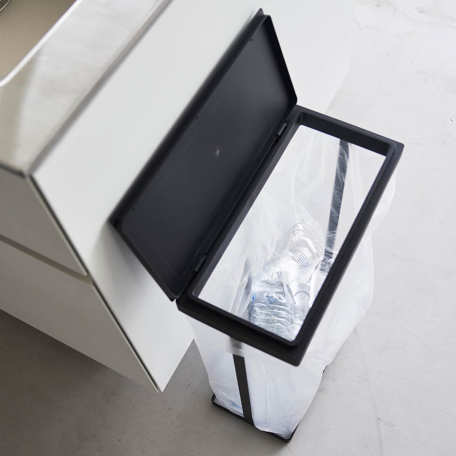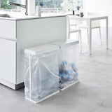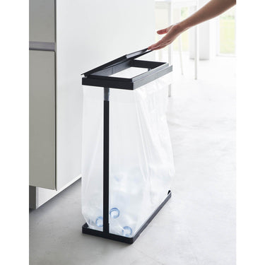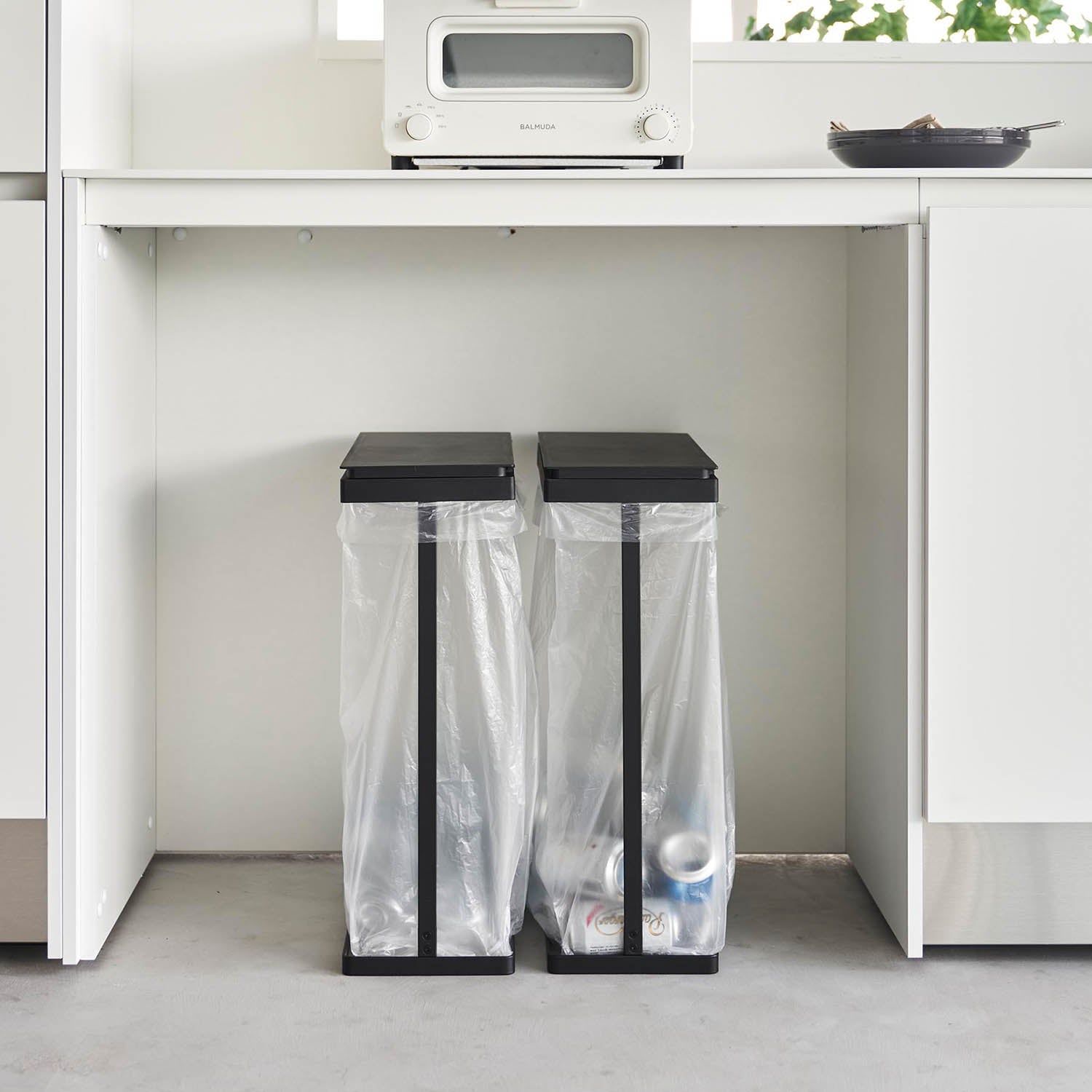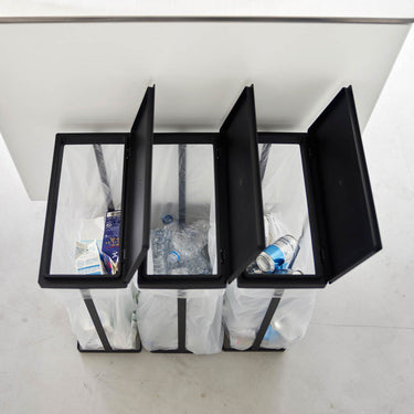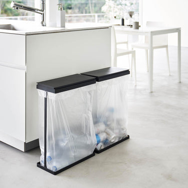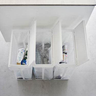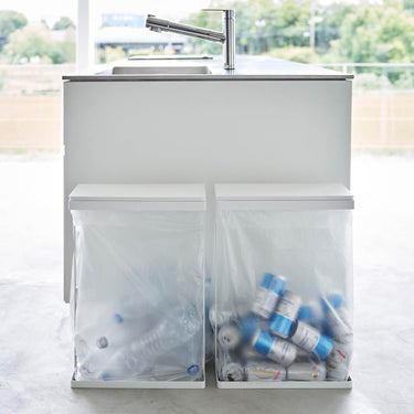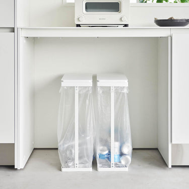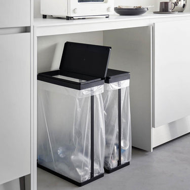 Simply hang a bin bag and close the lid to complete the setup. These bins are compact enough to fit under your kitchen counter and blend well with your interior decor when placed side by side. The lid opens sideways, making it possible to store in pantry or under the dish rack. Its slim depth allows for space-saving installation. With a lid, it also helps to reduce odours. Line up multiple bins for sorting recyclables such as plastic bottles, cans, and other recyclable waste. To remove the bin bag, simply pull it out from the front after removing the lid!