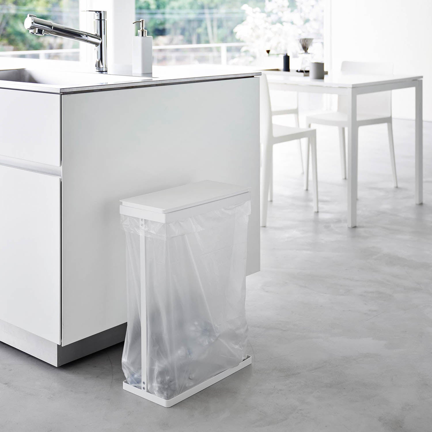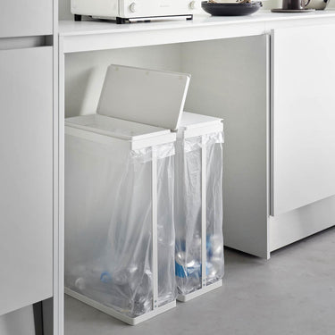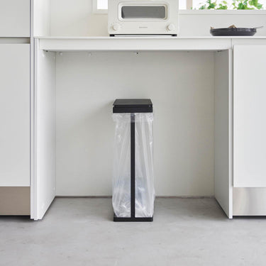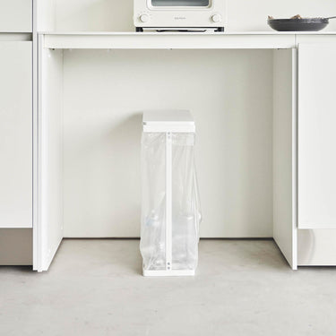 Simply hang a bin bag and close the lid to complete the setup. These bins are compact enough to fit under your kitchen counter and blend well with your interior decor when placed side by side. The lid opens sideways, making it possible to store in pantry or under the dish rack. Its slim depth allows for space-saving installation. With a lid, it also helps to reduce odours. Line up multiple bins for sorting recyclables such as plastic bottles, cans, and other recyclable waste. To remove the bin bag, simply pull it out from the front after removing the lid!