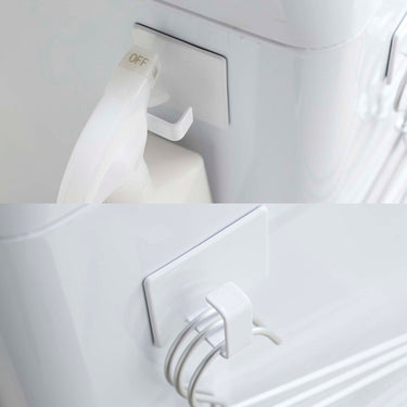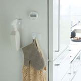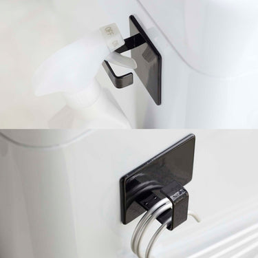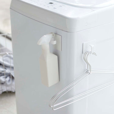 This is a magnetic spray hook that can be easily installed on washing machines, fridges, or wherever needed. It can be used in both vertical and horizontal directions, allowing you to adjust it according to the items you're storing. Its compact size makes it versatile for any location.