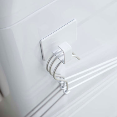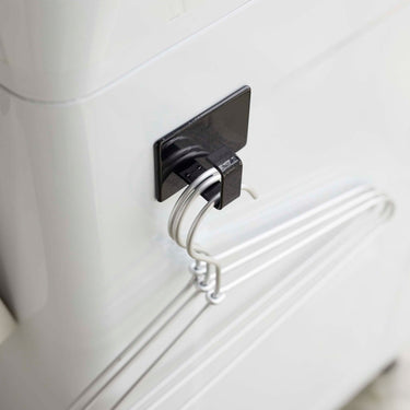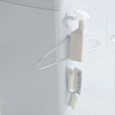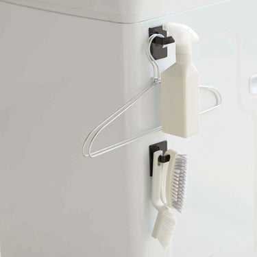 A set of two hooks that can be easily attached to washing machines and the like with magnets