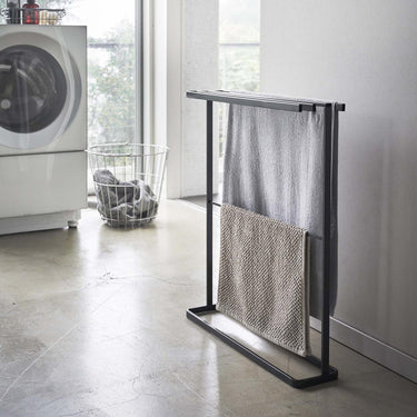 This slim bath towel hanger allows you to easily hang your towel from the side. The lower bar can also be used to dry your bath mat. Its slim design ensures it doesn't take up much space.