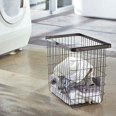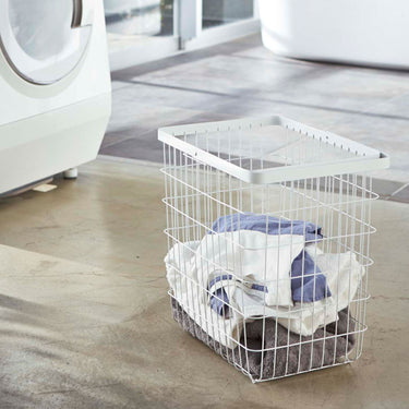 A sophisticated laundry basket with a simple, no-nonsense design. Comes with a handle for easy transportation, which can be stored horizontally when not in use.
