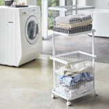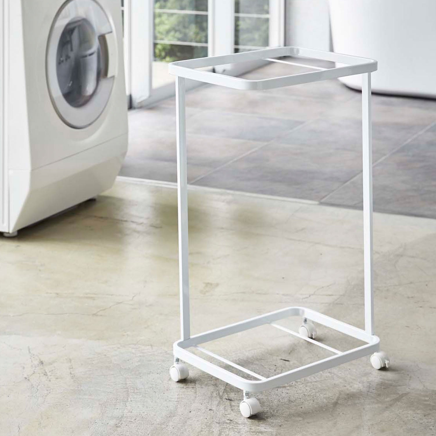 A simple and stylish laundry wagon. With its open-corner design, you can easily access the basket stored in the lower section, regardless of whether the wagon is placed vertically or horizontally.