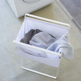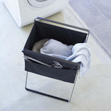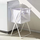 A high-raised, collapsible laundry basket that makes loading and unloading laundry a breeze.