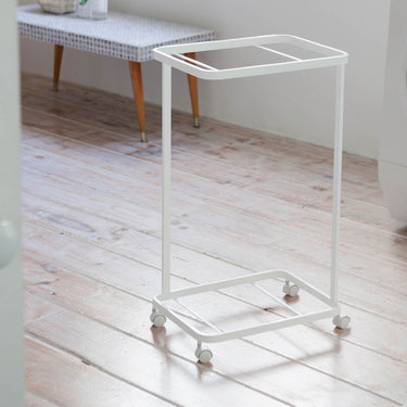 A simple and stylish laundry wagon. With its open-corner design, you can easily access the basket stored in the lower section, regardless of whether the wagon is placed vertically or horizontally.