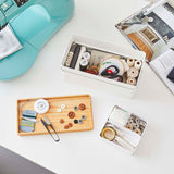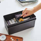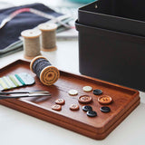 Internal Size | Container: (Upper) W25.5×D12.5×H5.5cm, (Lower) W25.5×D12.5×H6.4cm, Wooden Lid Tray Part: W24.5×D11.5×H0.8cm, Tray: (Large) W12.4×D5.8×H3.5cm, (Small) W6.2×D6.2×H3.5cm, (Pin Cushion Storage) W6×D6.2×H3.5cm |