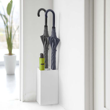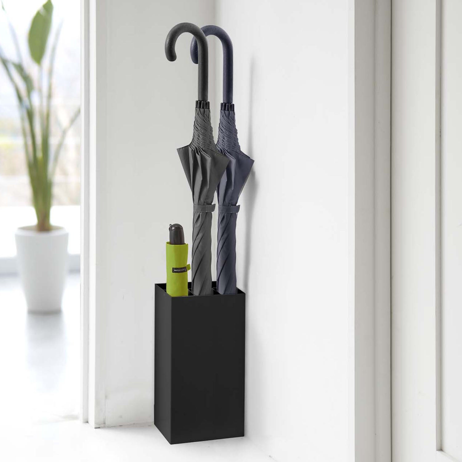 A compact, square umbrella stand that fits perfectly in the corner of your entrance hall.