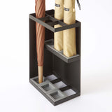 It's a space-saving design that doesn't take up much room in your entranceway. By adjusting the position of the tray, it can also accommodate folding umbrellas.