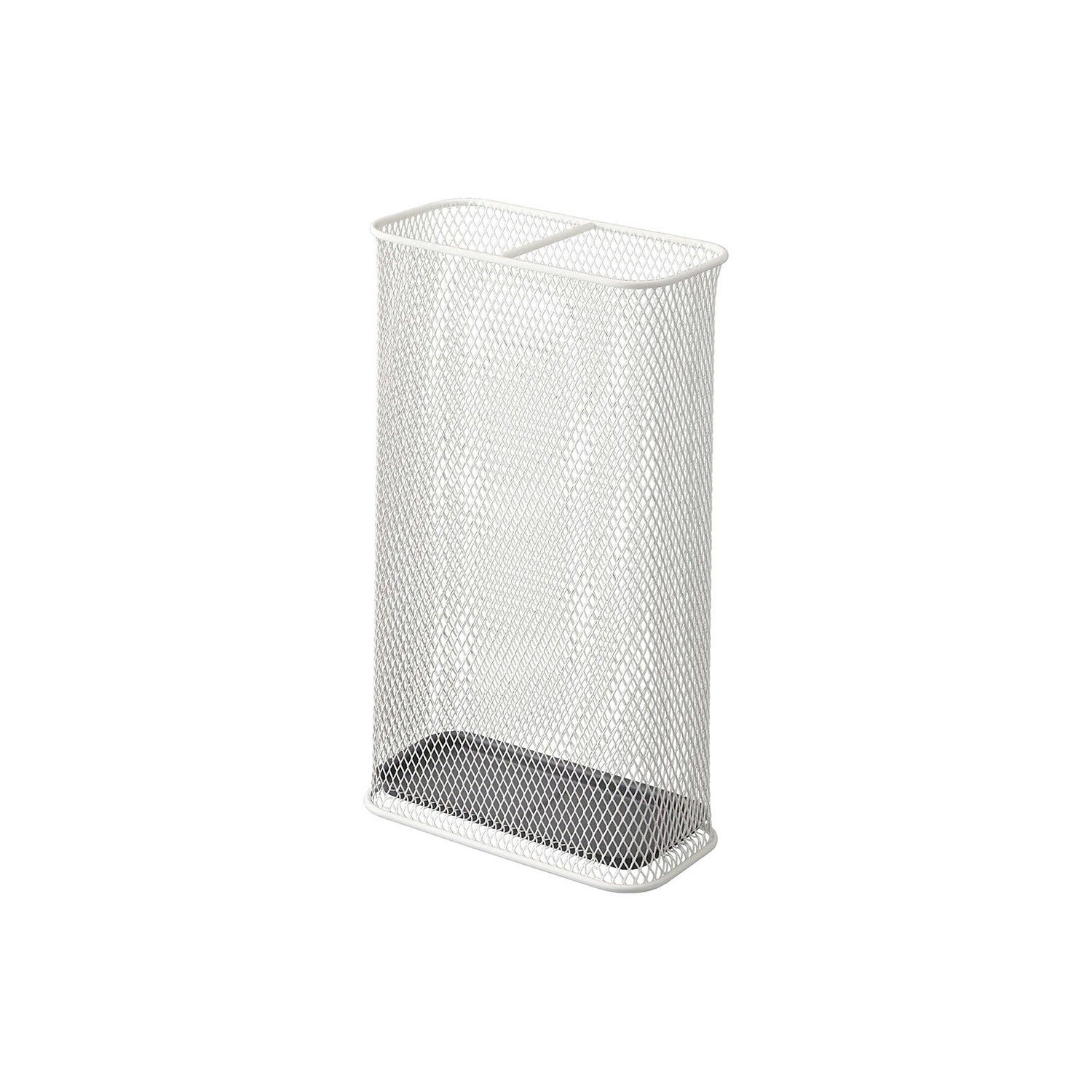 A simple umbrella stand that matches various styles. It features dividers to prevent stored umbrellas from getting tangled, and the dividers also serve as handles, making it convenient when you need to move it slightly. It has a breathable mesh design.