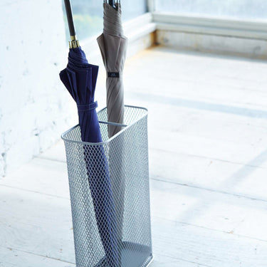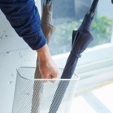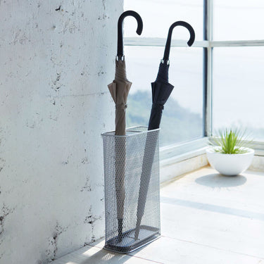 A simple umbrella stand that blends well with various atmospheres. It features a breathable mesh design.