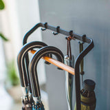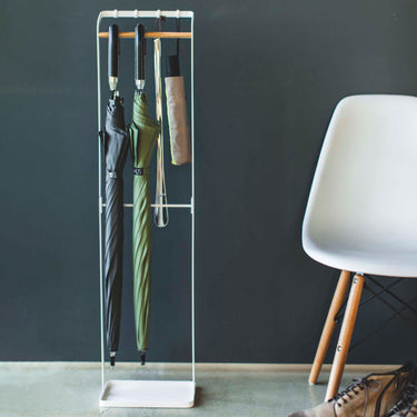 You can hang umbrellas on the bar and foldable umbrellas or shoe horns on the hooks.