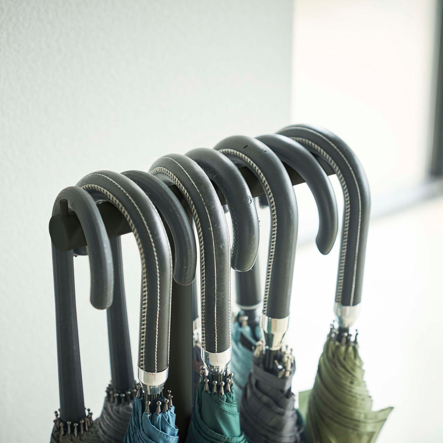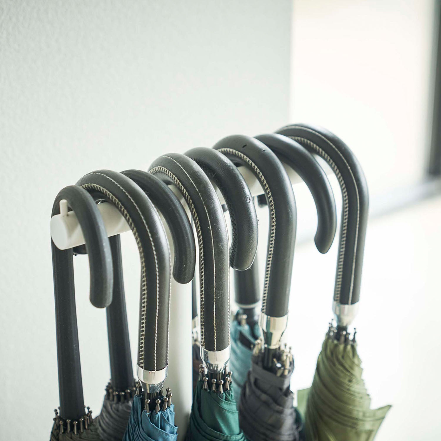 An easy-to-use umbrella stand that makes storage a breeze. Simply hang your items for smooth access. It can store not only folding umbrellas but also shoehorns. With the ability to hang items front and back, it can store up to 8 umbrellas.