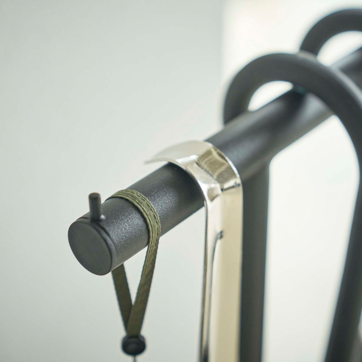 The bar's side features protrusions, making it easy to hang items such as folding umbrella straps.