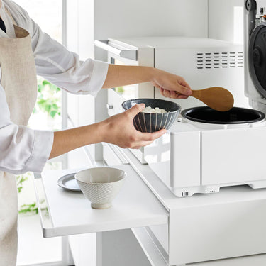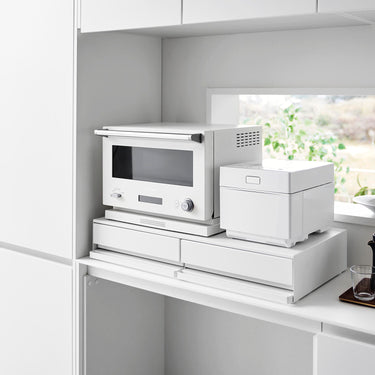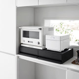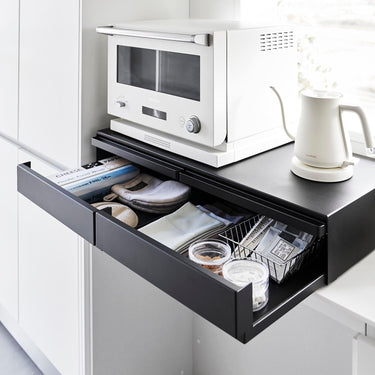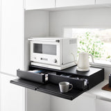 This two-way design allows you to switch the positions of the drawer and slide table to suit your appliances. If you assemble it with the slide table at the bottom, you won't bump into dishes when opening the microwave door. With a width of 80cm, it provides ample space and can accommodate both a microwave and a rice cooker side by side. The drawer has an internal height of 9cm, allowing you to store plenty of small items, cutlery, and wraps.