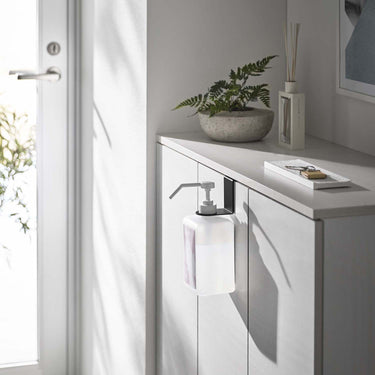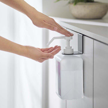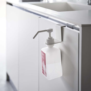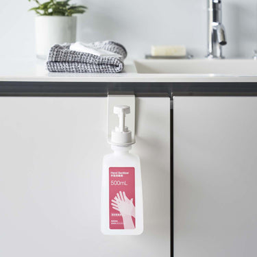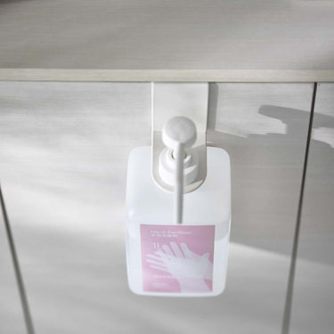 Simply hang it on the door! A holder that can store your alcohol disinfectant bottle. It can be installed at a height reachable by children. It keeps your shoe cabinet top clean and hygienic, preventing it from being dirtied by splashing water droplets. You can easily attach an alcohol disinfectant bottle to your entrance or bathroom door.
