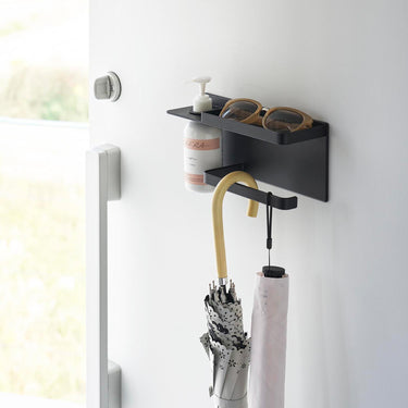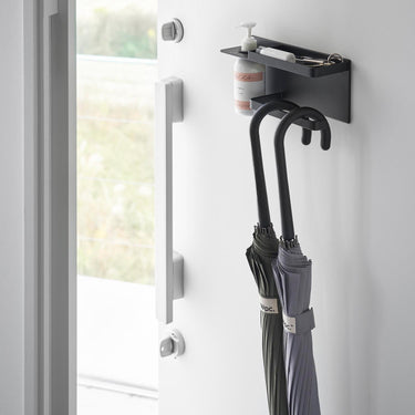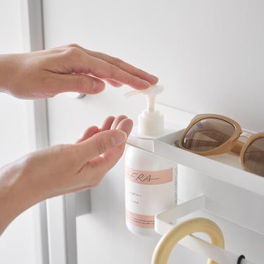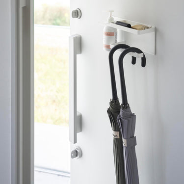 Easily attach this to your front door with a magnet, and store all your UV protection items in one place before heading out. You can pump your sunscreen cream right from the holder. Hang your scarf or arm covers for quick access when you're on the go. It also has storage for sunglasses, parasols, and folding umbrellas. A convenient tray for storing small items such as keys and seals is included.