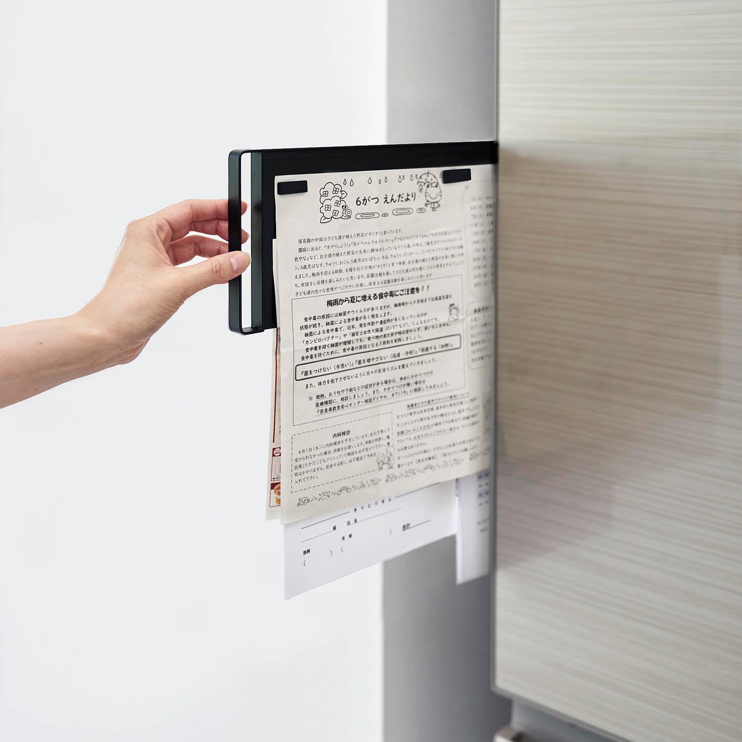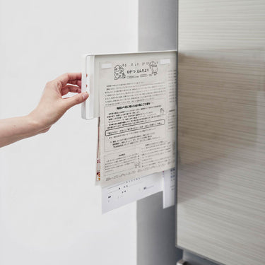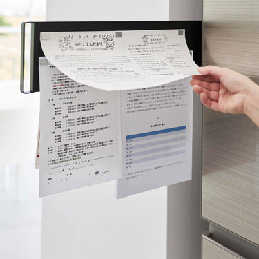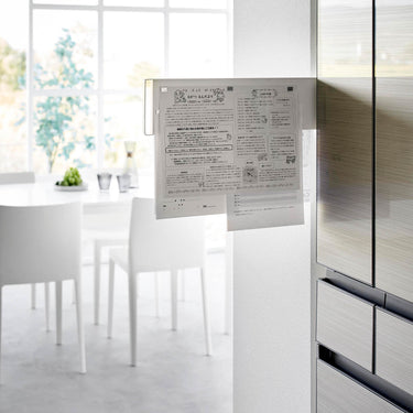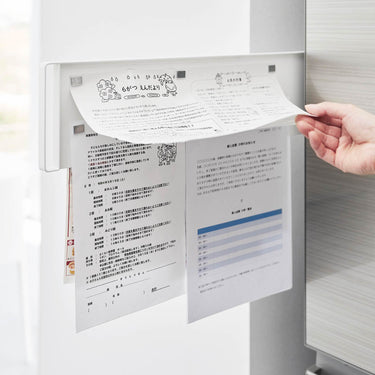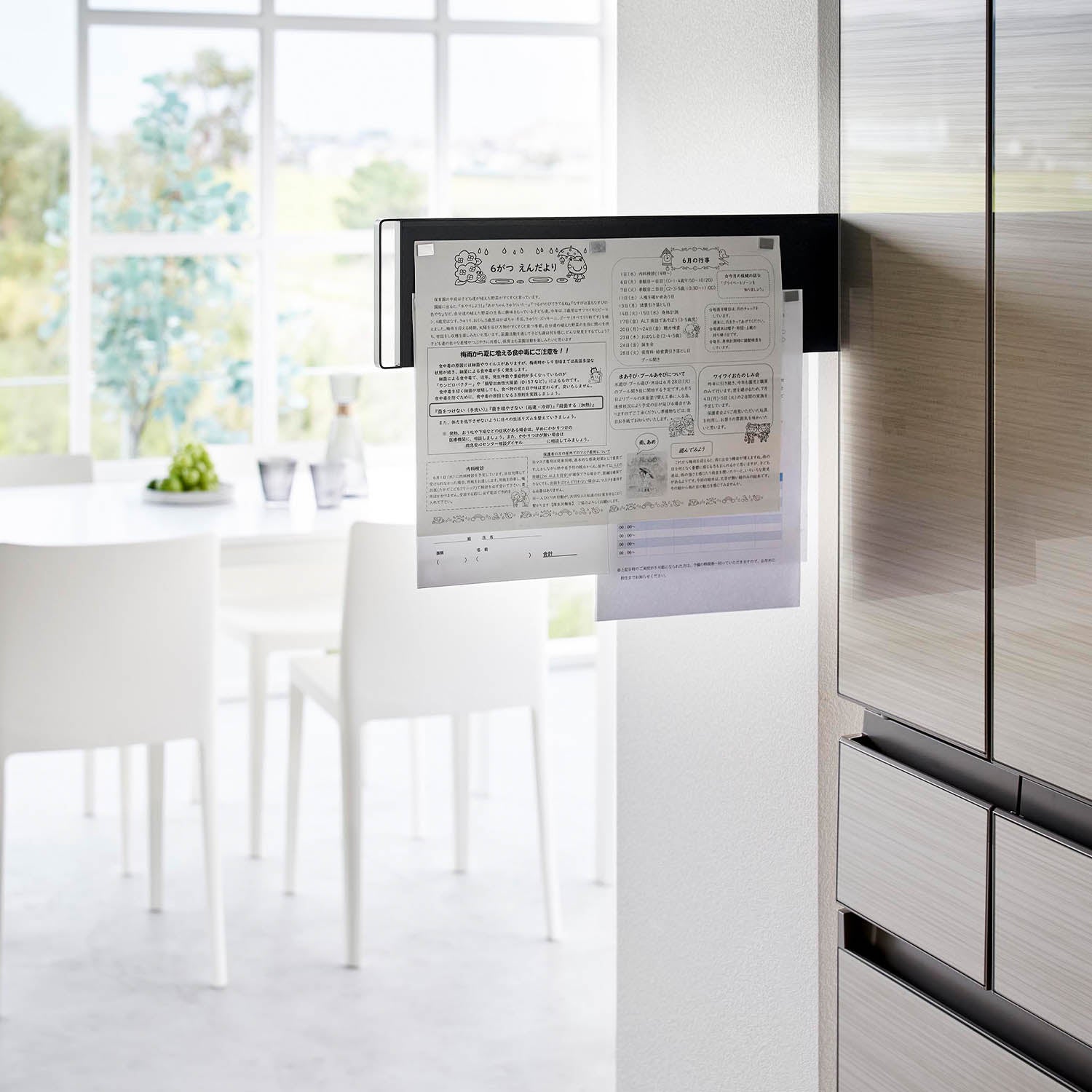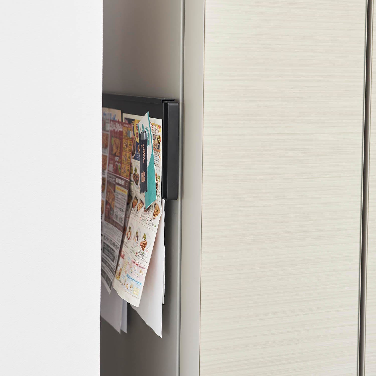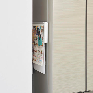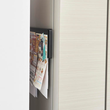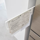 Make the most of the gap next to your fridge! This slide panel attaches easily to the side of your fridge with magnets and can be pulled out only when needed. It allows you to hide and store prints, flyers, and the like in the dead space. It can also be attached to the back. Comes with 4 magnets included. If you are using your own magnets, please use ones that are less than 5mm thick. Depending on where you place your fridge, you may not be able to attach it to the back. Exclusive to refrigerators.