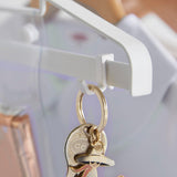You can hang items such as key holders and personal alarms on the adjustable hooks.
