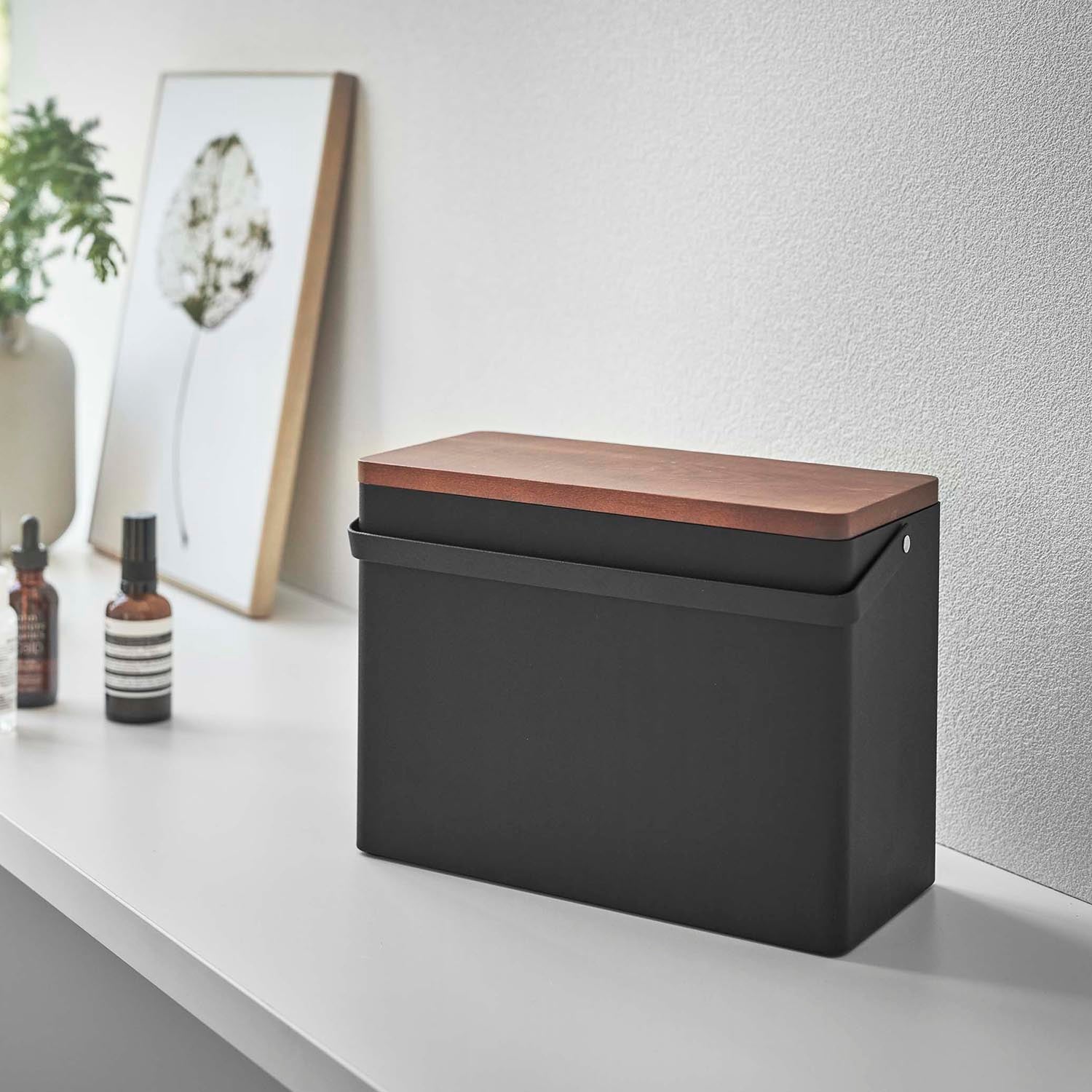 Material | Container: Steel (powder coated) Lid: Natural wood (lacquer coated) Tray: ABS resin |