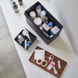 Internal Size | Container: (Upper) W25.5×D12.5×H5.5cm, (Lower) W25.5×D12.5×H13cm. Wooden Lid Tray: W24.5×D11.5×H0.8cm. Trays: (Large) W12.4×D5.8×H3.5cm, (Medium) W6.2×D6.2×H3.5cm, (Small) W6×D6.2×H3.5cm. |