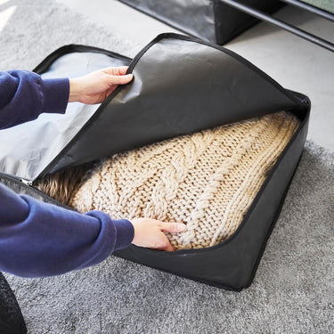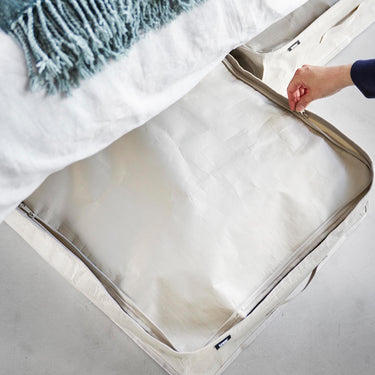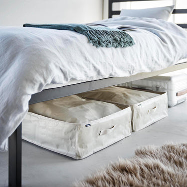 Transform the space under your sofa and bed into a functional storage area with this durable set of two polyethylene sheet storage cases.