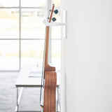 The floating storage makes floor cleaning a breeze. It keeps your instrument and wall from getting scratched by suspending them off the wall. The hook is silicone-coated to prevent scratches on your instrument and rotates to accommodate heads of various shapes. Installation is easy - simply attach the base to the wall with plasterboard pins and insert the main body. The plasterboard pins make the holes in the wall less noticeable. It can also be installed with wood screws.