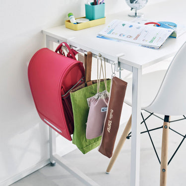 Attach it to your desk to neatly store school supplies such as backpacks, shoes, and flutes. It's also handy for storing small items around your desk like headphones. It helps keep your table or desk tidy, allowing you to make better use of your space. Even when you hang bags or lesson bags, you can quickly grab them, making your departure smoother. It can be securely attached to the side of your table or desk using an adjustable screw. It can be attached to tabletops with a thickness of 1.2cm to 5cm.