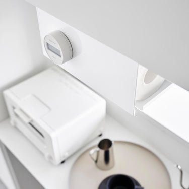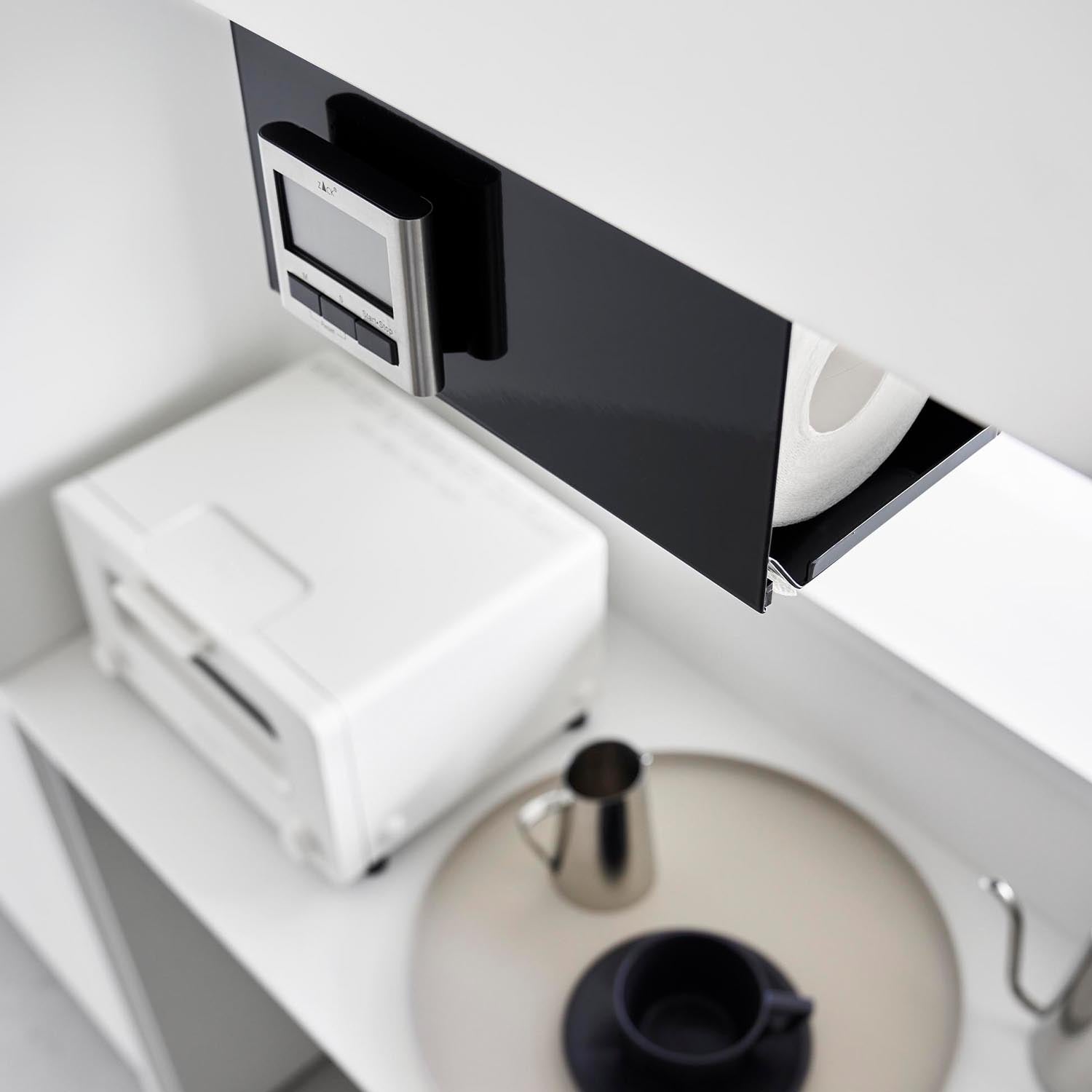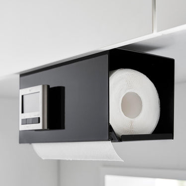 This under-cabinet kitchen paper holder can be suspended for storage, keeping your kitchen paper clean and hygienic with its dust and oil splash cover. It's a small size that fits standard kitchen paper. Made of sturdy steel, you can attach magnets to it. The silicone stopper allows you to easily cut the paper with one hand. You can easily replace the paper from either side. Securely fix it under the cabinet with the adjustable screw.